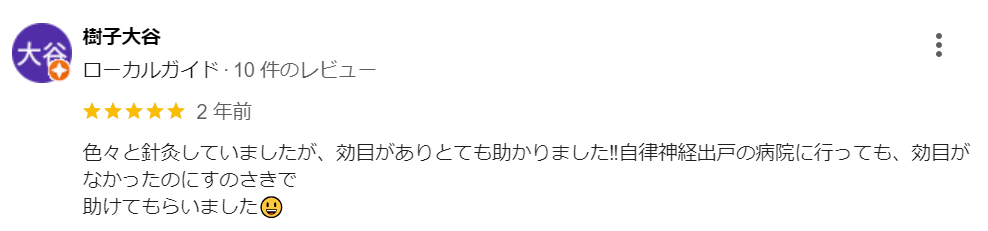 自律神経に効く鍼灸治療(Google口コミ抜粋)